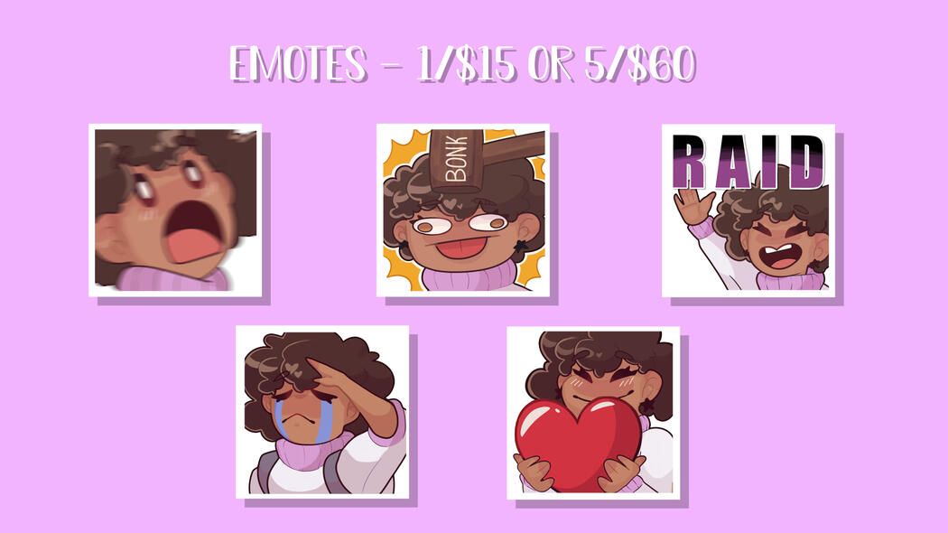 Hey! you're a twitch streamer right? Im guessing you don't wanna hand draw all your stuff? Well good news for you! Ill do it for ya (With compensation of course) Here are my currently listings for all services twitch related! <3 I hope to work with you soon!